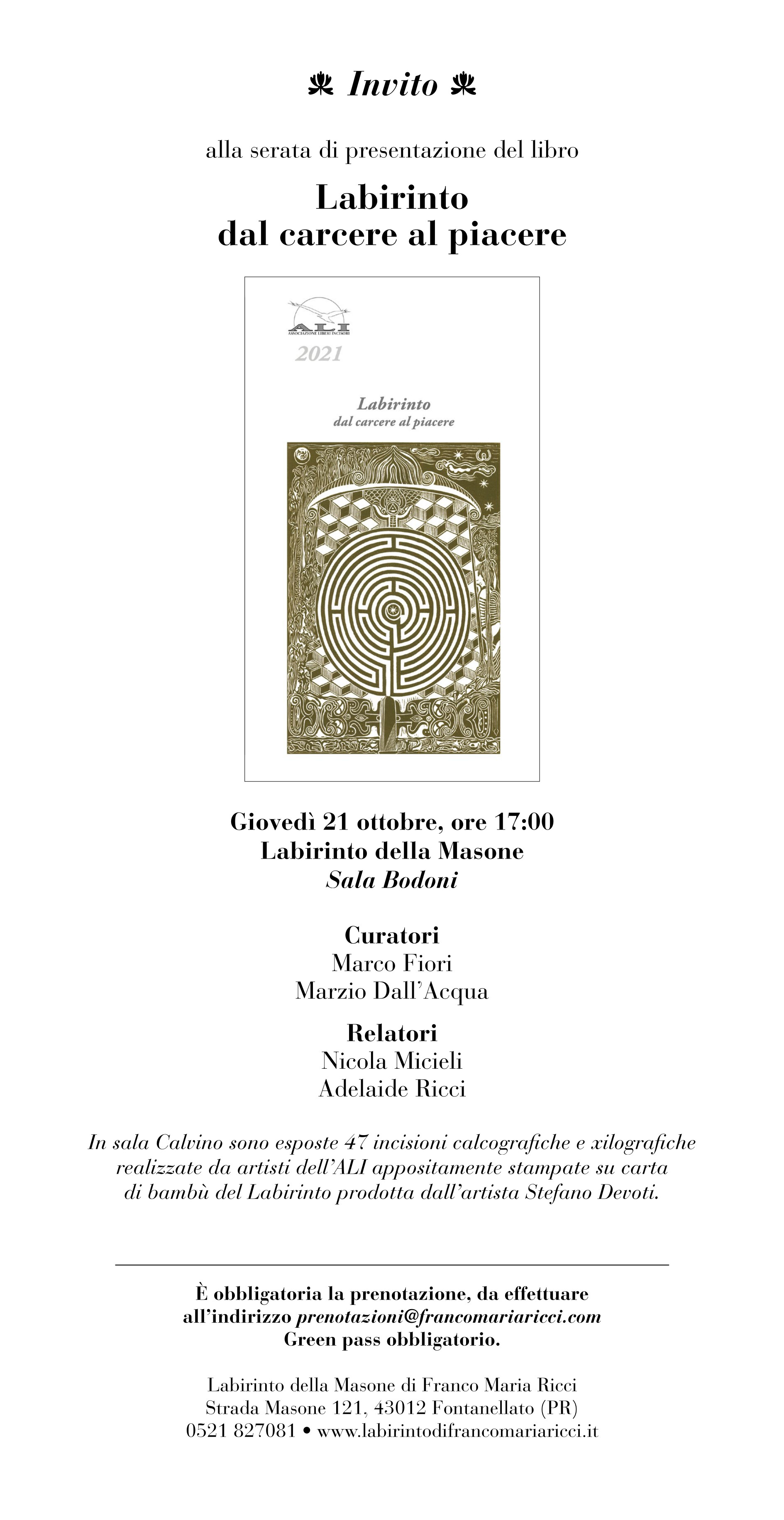 In mostra, sarà possibile acquistare il catalogo pubblicato nel 2020 da Youcanprint, che riporta le 27 incisioni realizzate, il testo introduttivo del Presidente del Consorzio Elide Stancari e critici di Giancarlo Ciaramelli e Domenica Giaco.