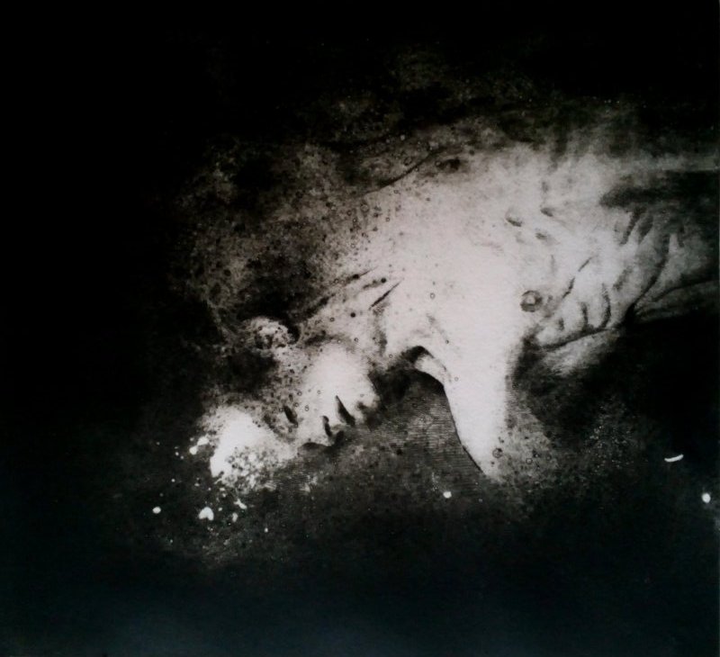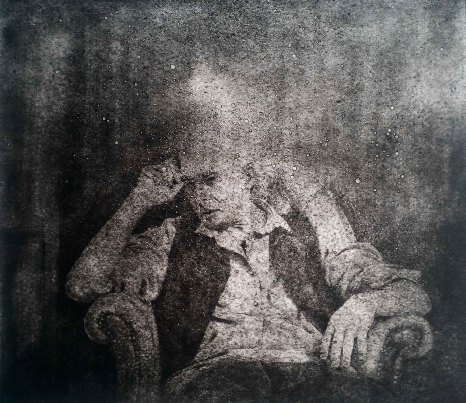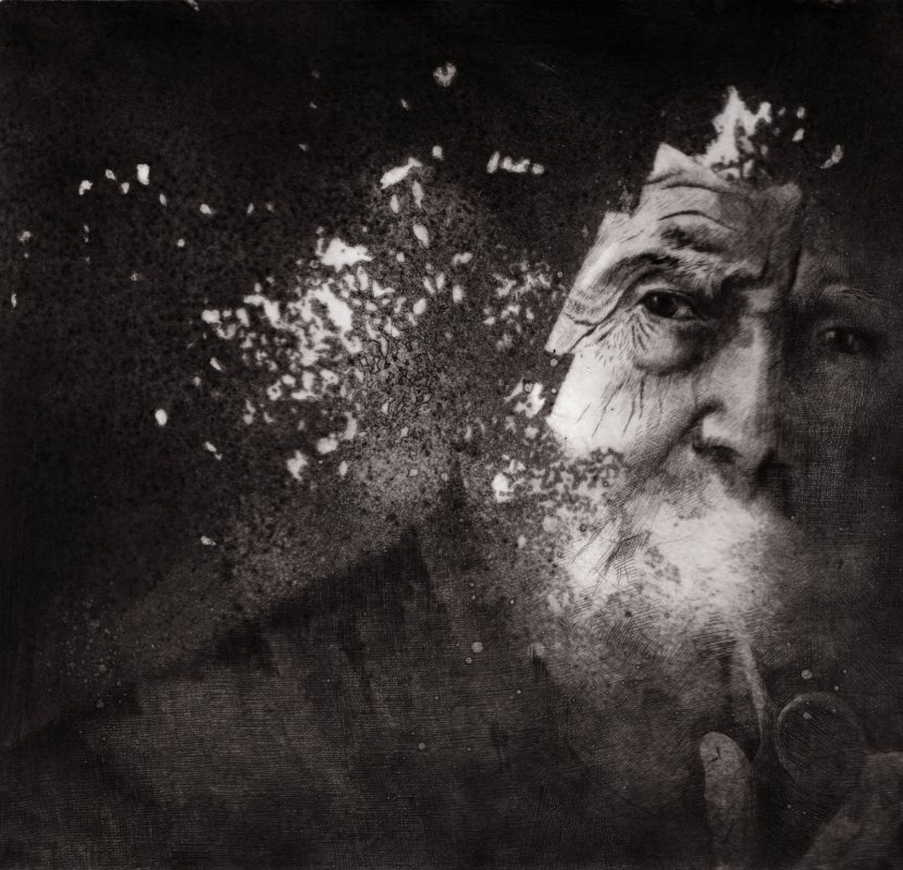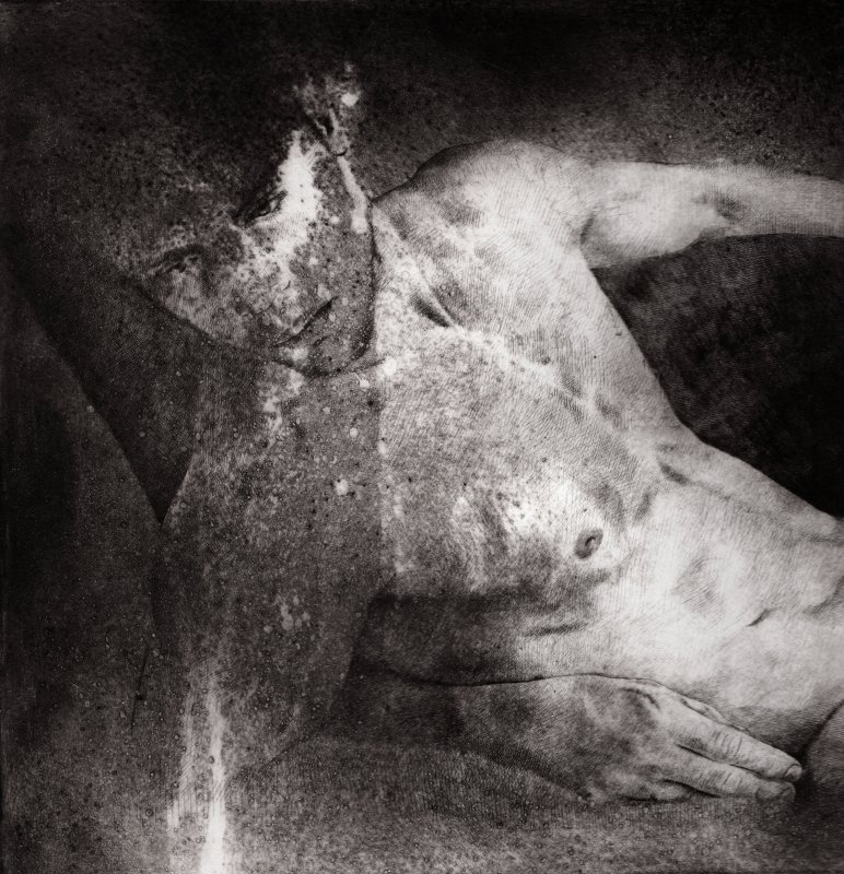 2020, dry point and iron paint on synthetic glass mm 450 x 350 paper cm 70 x 50
