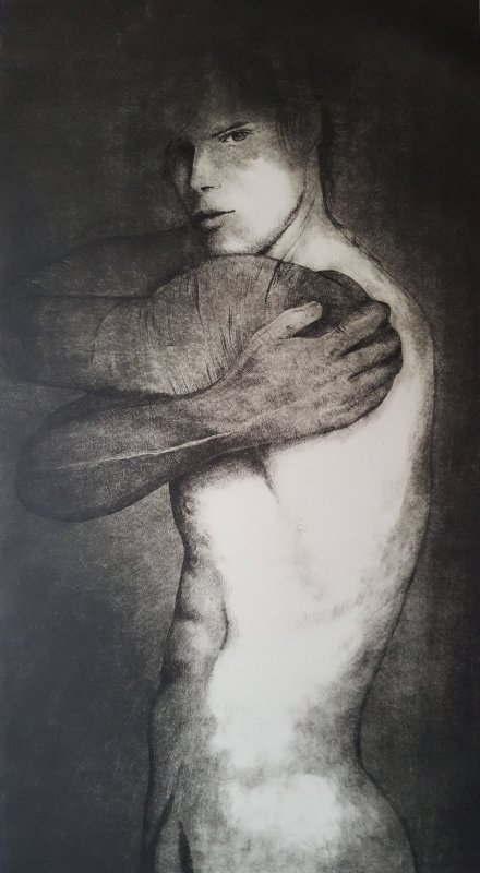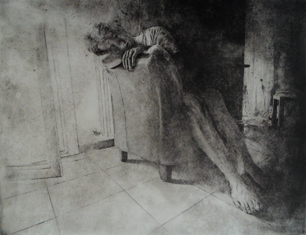The difference in the graphic outcome between the engraving by burin and by dry-point consists, in the fact that the so-called "scraps" (metal rises at the edges of the groove), are not removed as happens with the use of burin. We want to point out that in drypoint the tool "move" the metal while the burin removes it – therefore allowing to hold the ink, generating on the sheet, those characteristic velvety blacks halos around the signs.