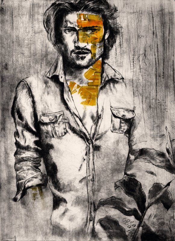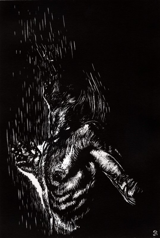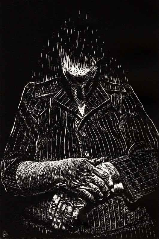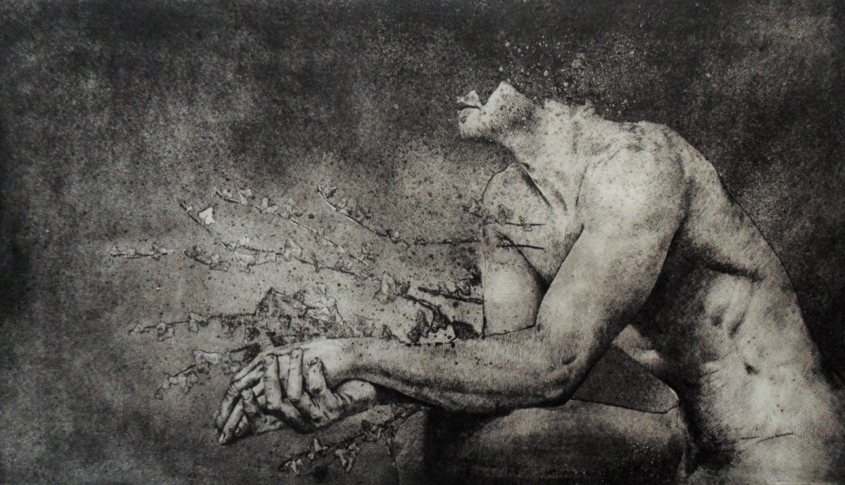 Direct technique of the metal etching (preferably copper), by means of a steel tip sharp, that is hold like a pencil.