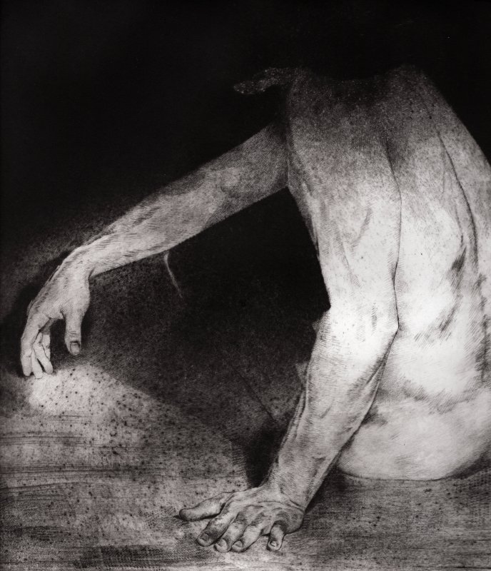 The pressure applied by the press causes a gradual crushing of the metal scraps, and consequently the loss of those peculiar chiaroscuro features of this technique therefore the good prints generally do not exceed (if the slab is not duly treated with steeling process) twenty specimens.