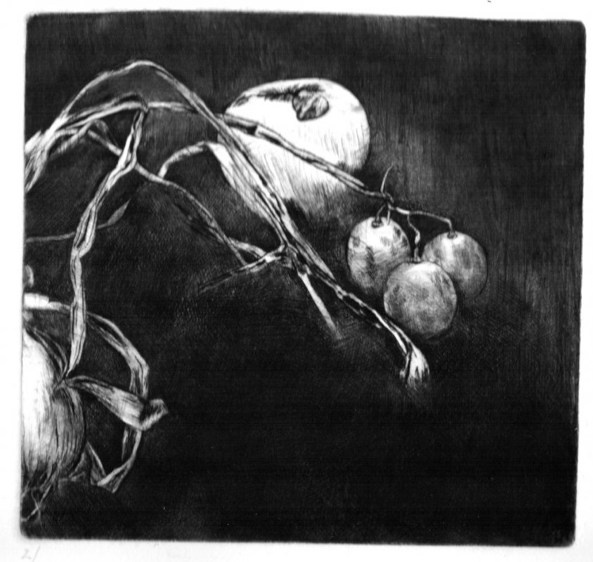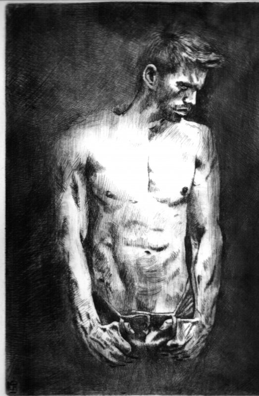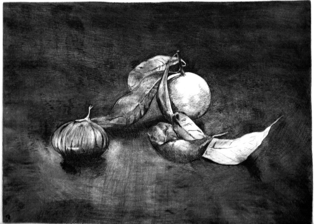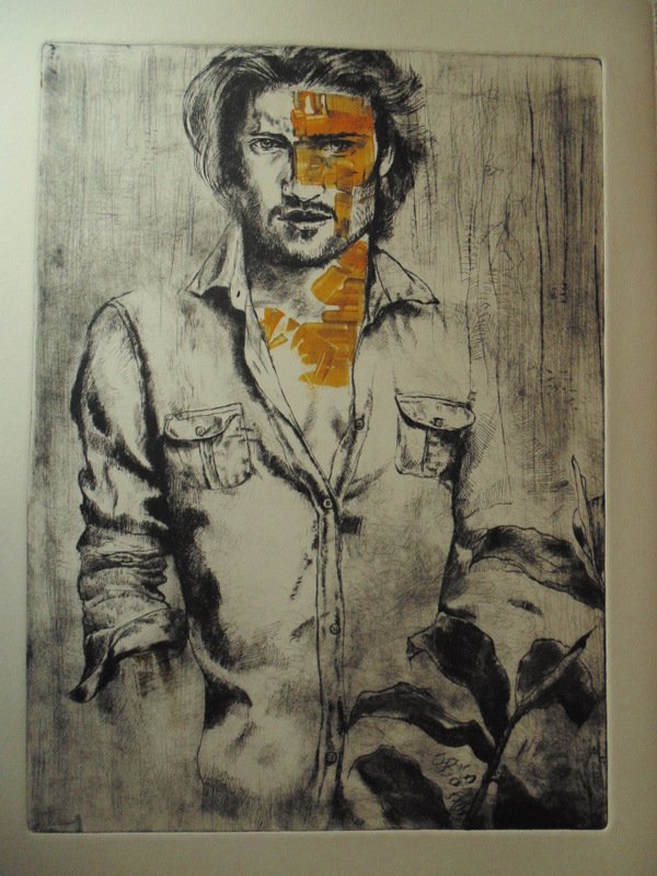 Direct technique of the metal etching (preferably copper), by means of a steel tip sharp, that is hold like a pencil.