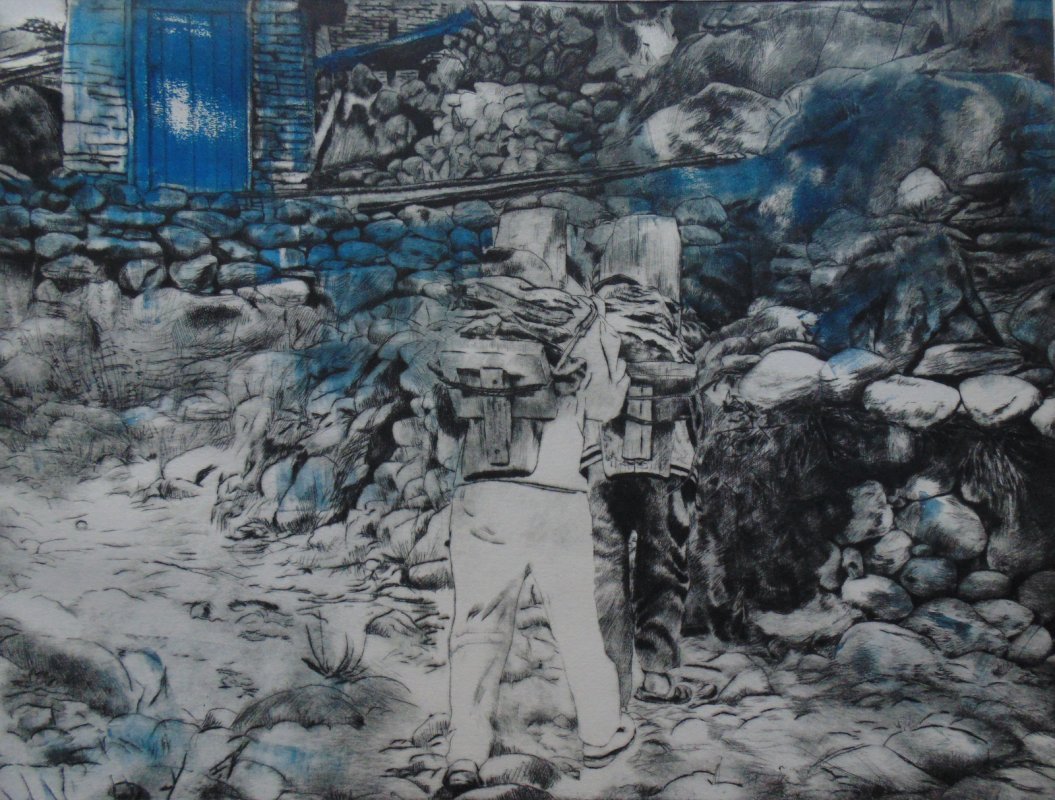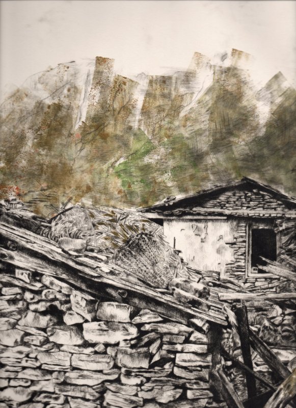 Titolo: Terra cielo e fuoco - Dry point for Rolwaling