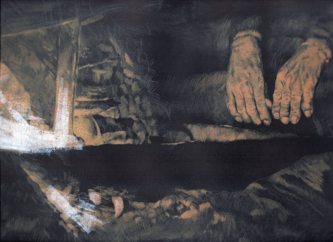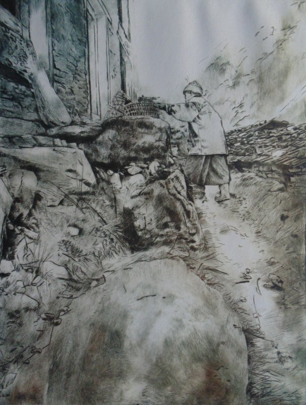 - Davanti al fuoco- casa di Pimba (Beding), lastra 250 x 345 mm, tiratura da 15 fogli, 100€