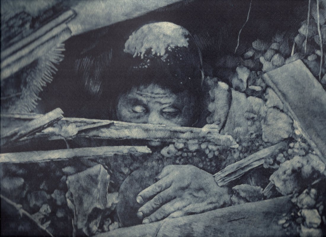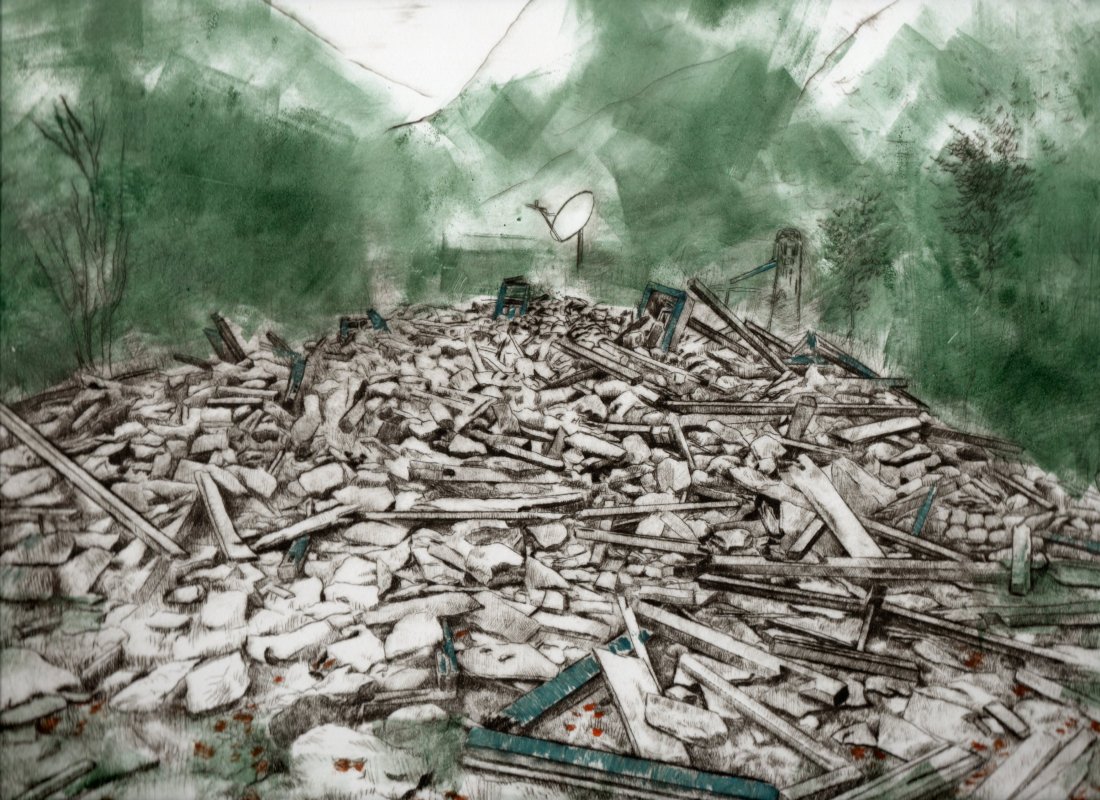 - Macerie della Scuola di Simigaon (2000m), lastra 250 x 325 mm, tiratura da 20 fogli, 100€