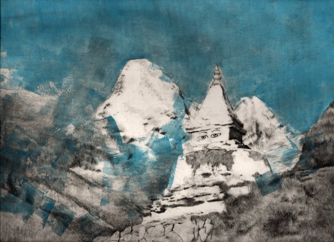 Stupa di Namche Bazar della Valle di Khumbu, lastra 250 x 325 mm, tiratura da 25 fogli, 100€
