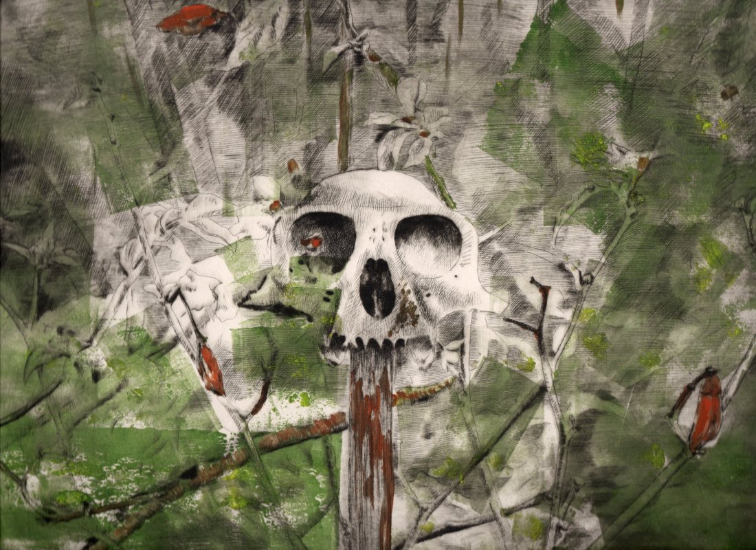 Teschio scimmia bianca a Simigaon, lastra 245 x 325, mmtiratura da 25 fogli, 100€