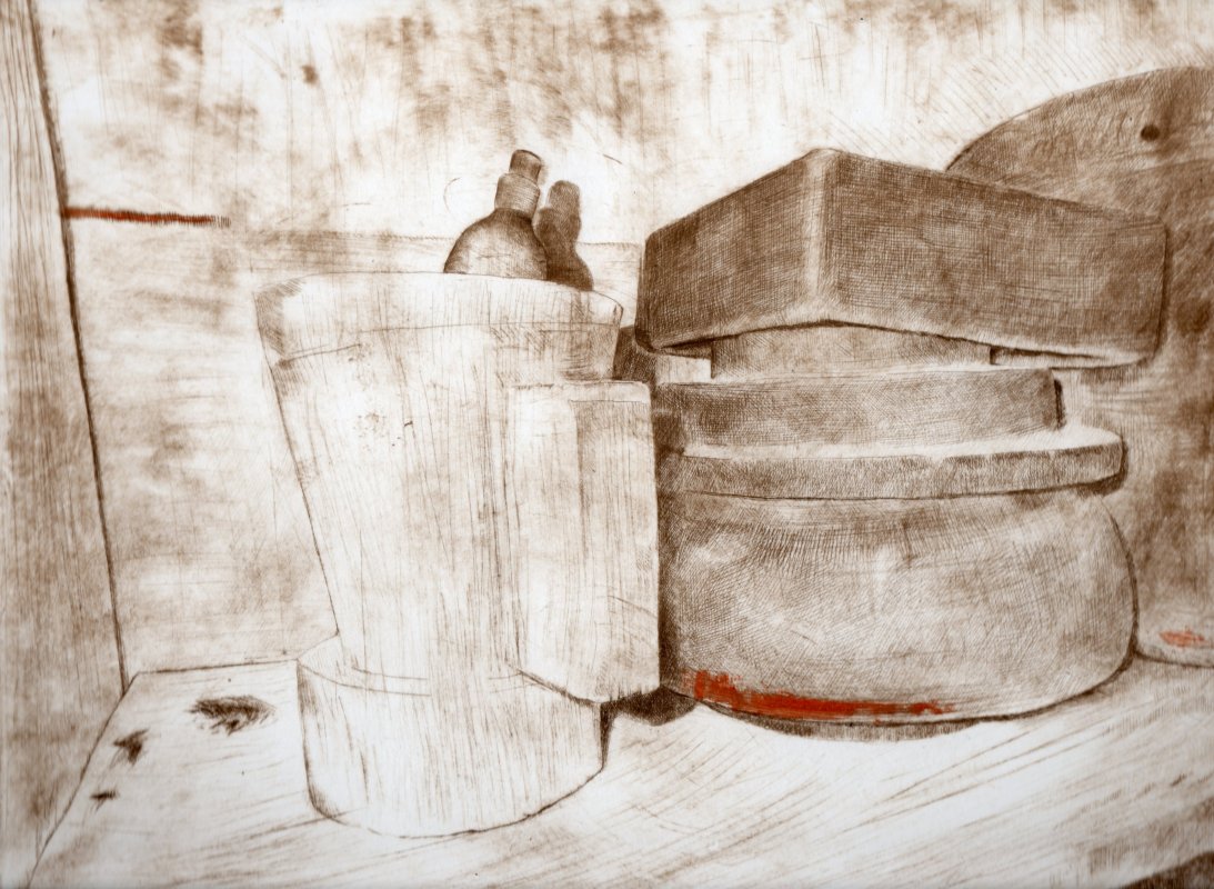 - Utensili (Simigaon), lastra 235 x 300 mm, tiratura da 25 fogli, 80 €