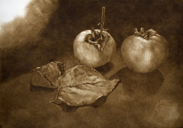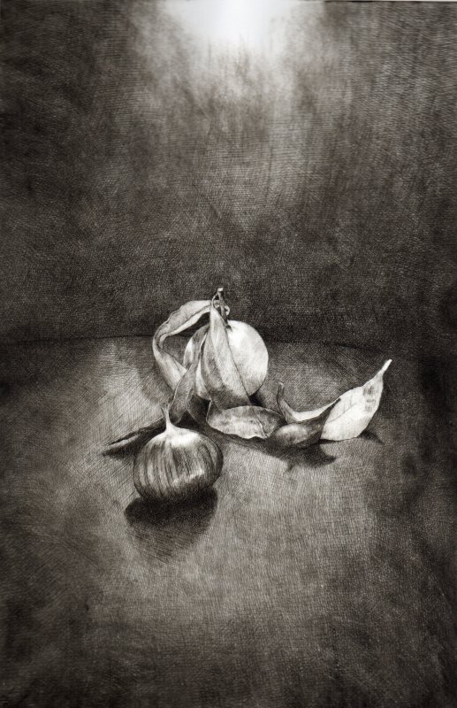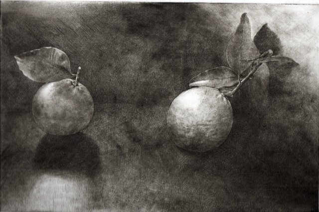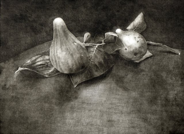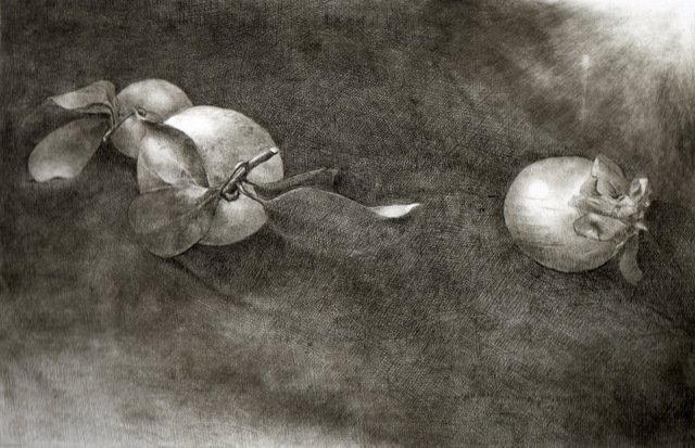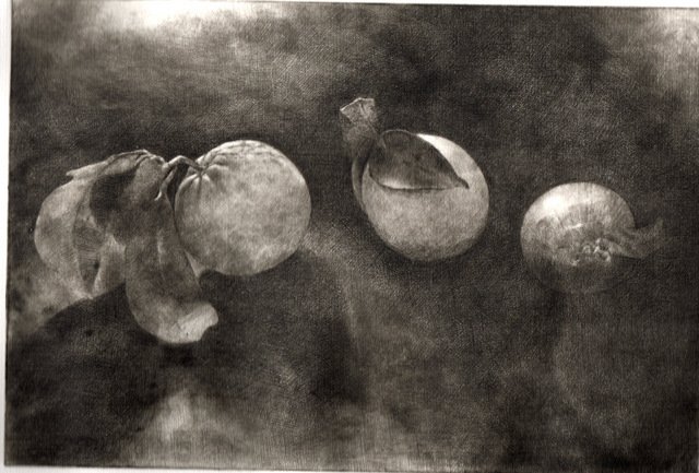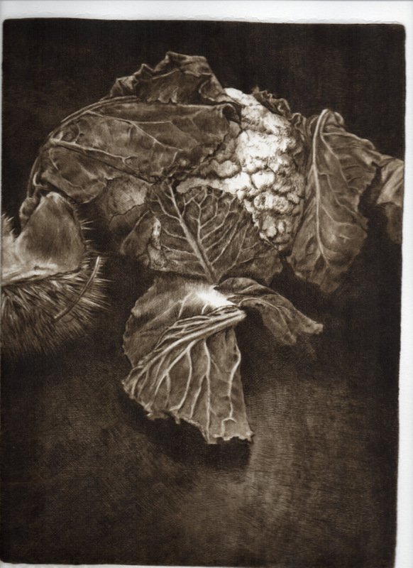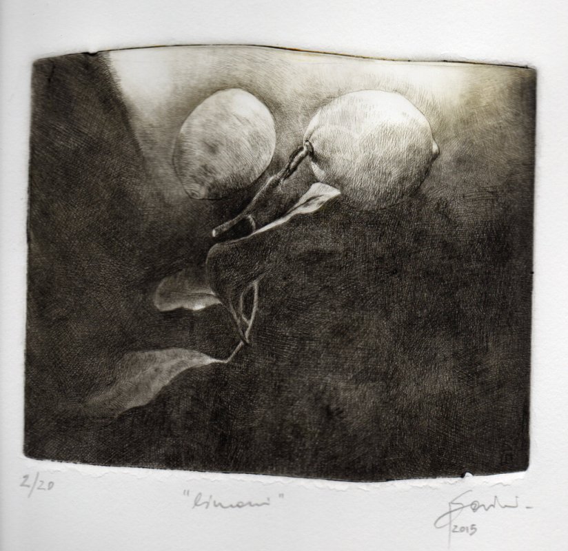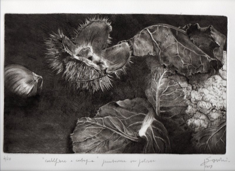 Penso a questa mostra come ad una parentesi una pausa della mia consueta ricerca figurativa pittorica sull'essere umano o sua esistenza; forse influenzata dal clima Expo che permea molte delle proposte espositive nazionali ho voluto tirare fuori dal cassetto ed esporre per la prima volta e forse unica volta una piccola serie di fotografie scelte fra le centinaia fatte. Le quali ho iniziato a scattare nel 2008 per puro piacere personale e per potermene servire in pittura al momento del bisogno. Attratta dall'interazione dei colori del soggetto (frutta e verdura e non solo) su nero grazie alla luce naturale diretta; un soggetto chiuso in una sorta di camera oscura, scelto non tanto per quello che è ma per i suoi colori e combinati per interagire fra di loro e manifestare attraverso la luce l'elemento compositivo pittorico. Una fotografia che sembra grafica ( e per questo che l'ho voluta associare ed accostare all'incisione altra mia passione e vederne il risultato ) ed una grafica che sembra fotografia. Cosicchè sono passata dalla ricerca del pittoricismo delle foto alle e nelle incisioni con la tecnica della puntasecca, tecnica base di incisione diretta ma non per questo elementare se si vuole raggiungere certe tonalità intermedie e soffuse come nel disegno. Quindi sarà una mostra composta per metà da foto digitali e dall'altra incisioni con l'intenzione di dimostrare il raggiungimento dello scopo preposto.