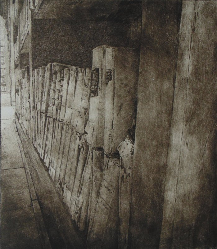 "Nel 2016 ho eseguito ed esposto il progetto L'archivio Inciso, incisioni sulla sezione ottocentesca dell'Archivio Storico di Mantova, un posto magico dove il tempo sembra fermarsi sommerso nel pulviscolo spesso della polvere, dall'aria rarefatta e dalle luci improvvise dei finestroni e penombre/ombre dense, impenetrabili. Ho provato gioia e soddisfazione nel realizzare quel lavoro che quando durante l'inaugurazione della stessa Giancarlo Ciaramelli (già Responsabile della sezione Fondi storici Stampe e Disegni della Biblioteca Teresiana), venuto a visitare la mostra, mi disse forse per battuta o no, di provare a realizzare qualche lavoro anche sulla Bilbioteca Teresiana, ho subito risposto volentieri.