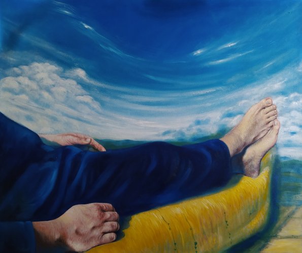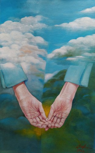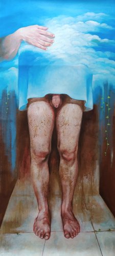2022, Fra cielo e terra l'uomo, olio su tela cm 121 x 55