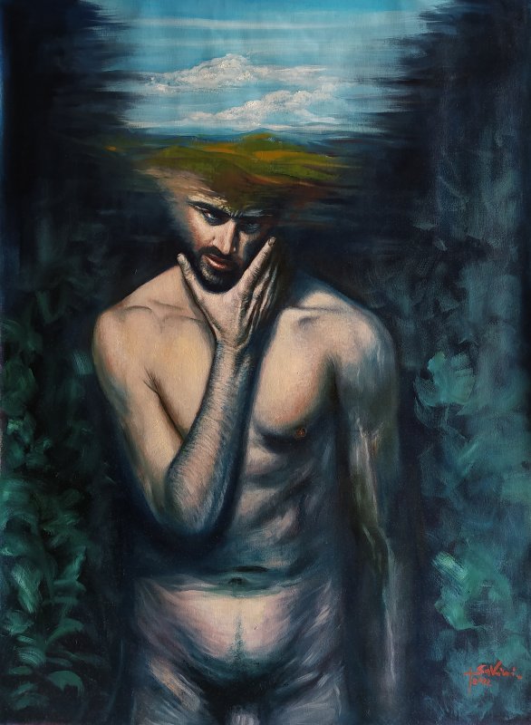 2022, Cercando l'uomo, olio su tela cm 50 x 40