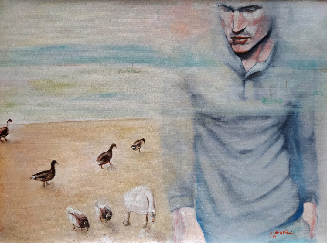 Scrive il critico d'arte Pompea Vergaro: Ella predilige le figure maschili in atteggiamenti contemporanei dove ne sottolinea la giovinezza, l'eleganza la cura dei dettagli e l'impasto armonioso tra pennellate e monocromie che intendono infondere all'intera opera armonia e senso profondo di spiritualità. In primo piano le mani tenute in atteggiamento di accoglienza, ma questo giovane uomo non ha sguardi per nessuno, è chiuso in un involucro dal quale dovrebbe liberarsene. Ma non siamo certi che vorrà farlo. Noi intanto, seguiamo il desiderio di Daniela Savini, la quale, anche se non ci lascia molte indicazioni, considerando che l'opera è senza titolo, è fiduciosa e lo comprendiamo dalle abili e armoniose pennellate che regala... (Nociglia, 10 luglio 2011)