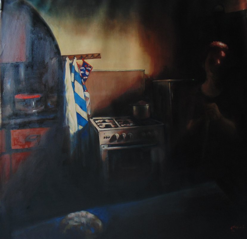 cucina abruzzese, 2016, olio su tela, 100 x 98 cm