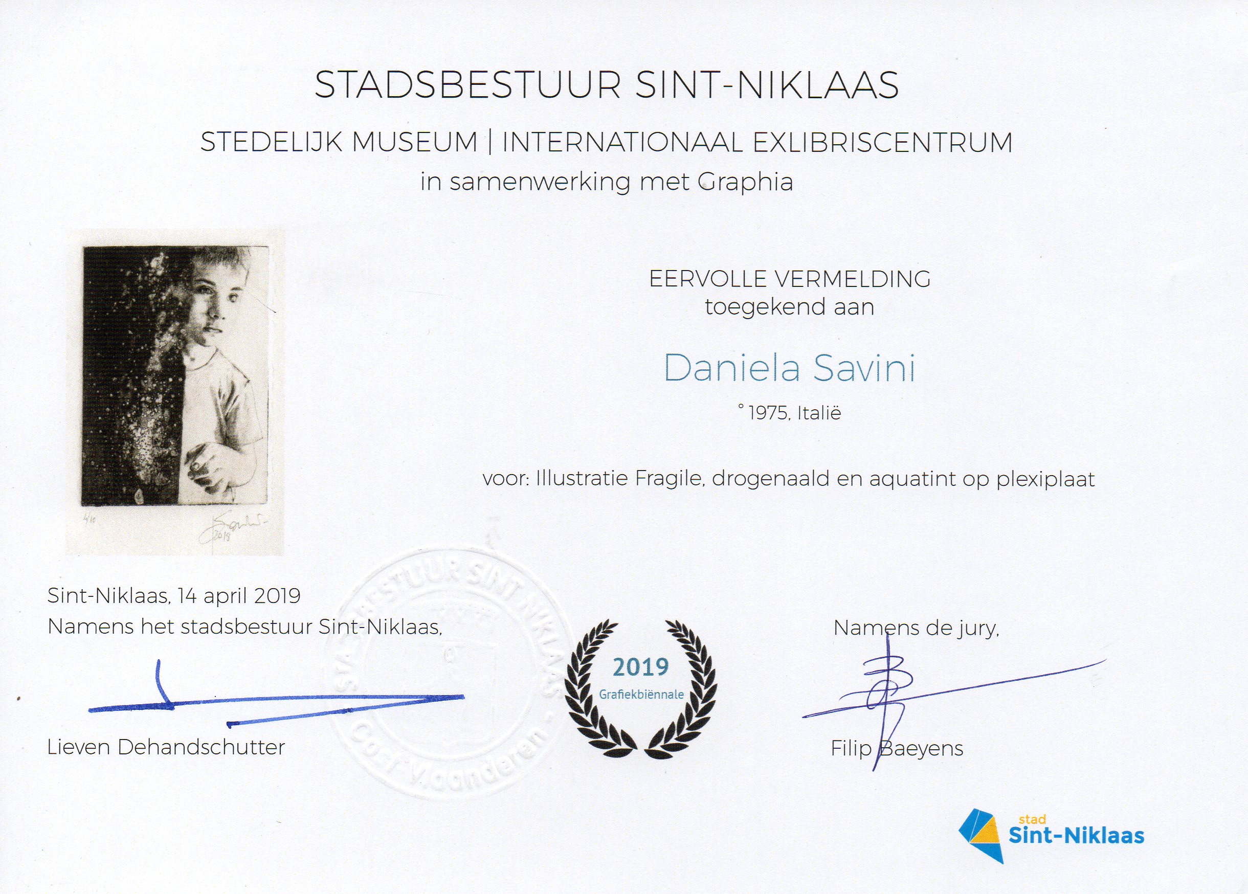 Catalogo Sint-Niklaas 2019 International bookplates and small printmaking competition menzione d'onore