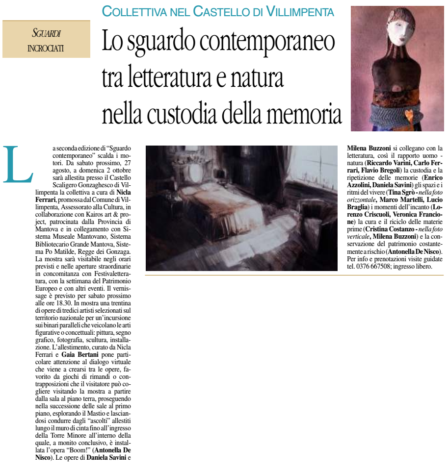 Voce di Mantova del 20-08-2016 - Lo sguardo contemporaneo tra letteratura e natura nella custodia della memoria Articolo precedente: Pubblicata una incisione nel libro Oma Tsho Prec Articolo successivo: Gazzetta di Mantova del 14-5-2016 Avanti