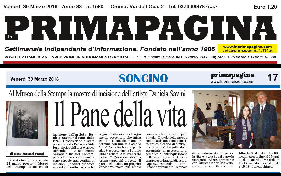 Articolo In prima pagina venerdì 30 marzo 2018 In Prima Pagina, settimanale indipendente d'informazione di Rosa Massari Parati Articolo precedente: Catalogo- libro Biblioteca Teresiana. Il respiro del tempo- 2018, Prinp Editore Prec Articolo successivo: Articolo su Archivio - aprile 2018 Avanti
