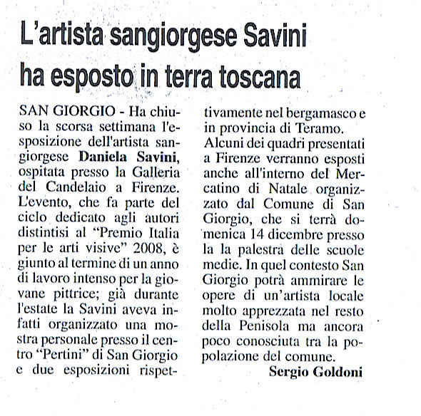 Articolo su "La Voce di Mantova" del 3 dicembre 2008 pag. 22 Articolo precedente: Catalogo ' XXIV Premio Italia per le arti visive' 2009 Prec Articolo successivo: "Civiltà Mantovana", anno XLII, n. 124 -settembre 2007 Avanti