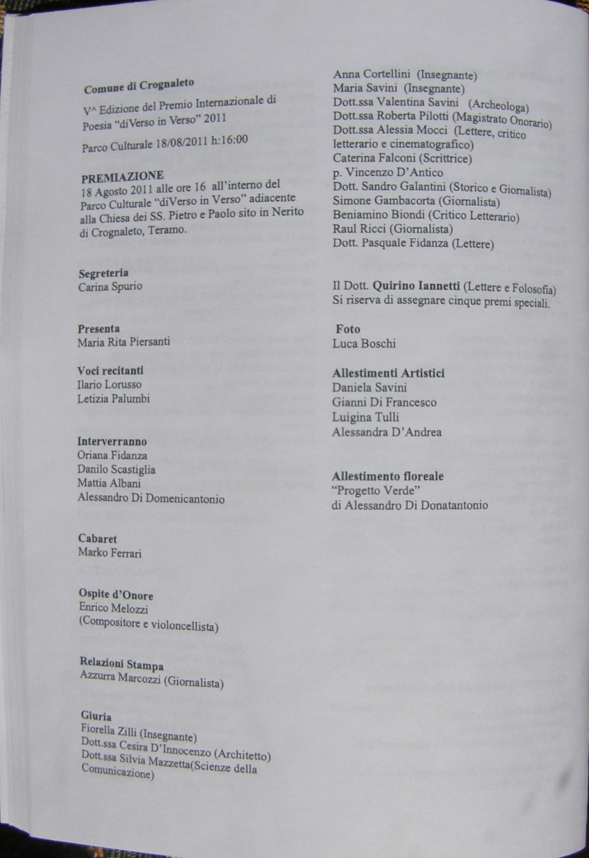 Il quadro 'Gran Sasso al Tramonto' è stato pubblicato sulla copertina dell'antologia poetica della 5^ edizione del premio di poesia 'di Verso in Verso'.