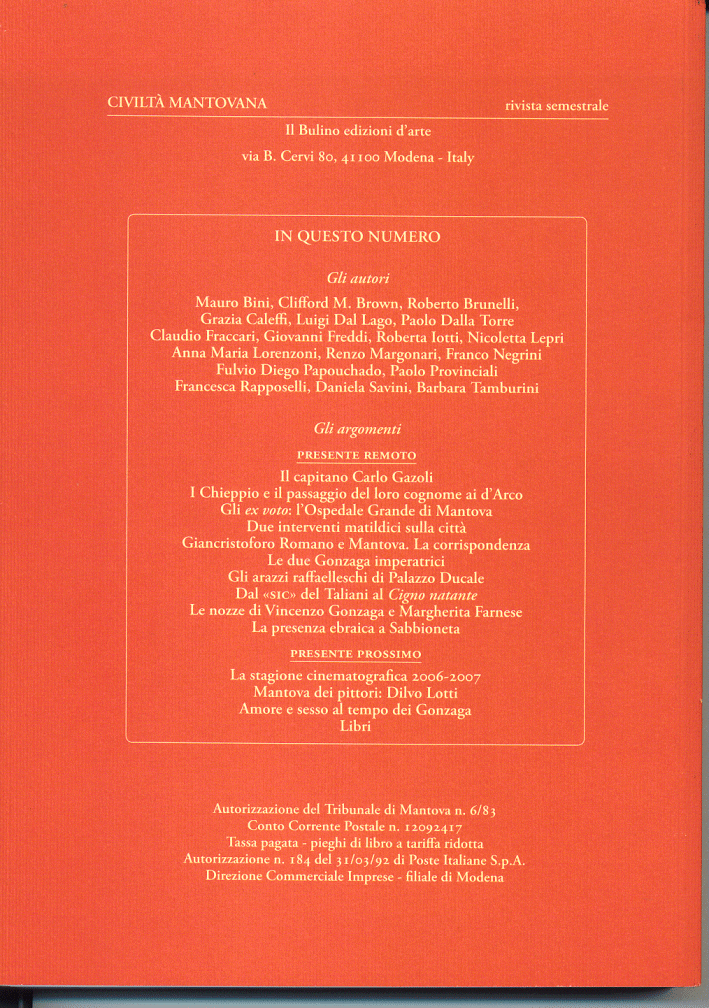 "Civiltà Mantovana", anno XLII, n. 124 -settembre 2007